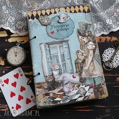 alicja w krainie czarów album. Scrapbooking albumy autorskie ręcznie robione upominek serce. Album z motywem 'alicja w krainie czarów" z postaciami kultowymi jest wyjątkowy, wykonany ręcznie w stylu vintage, ✍️Wym, Albumu ok255,00 zł