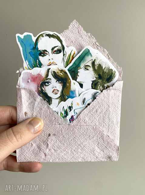 szybka wysyłkaZestaw 8 naklejek roses w kopercie z papieru czerpanego. Akcesoria handmade Zestaw 8 naklejek na podstawie moich ilustracji portretów akwarelowych, idealne na prezent22,00 zł