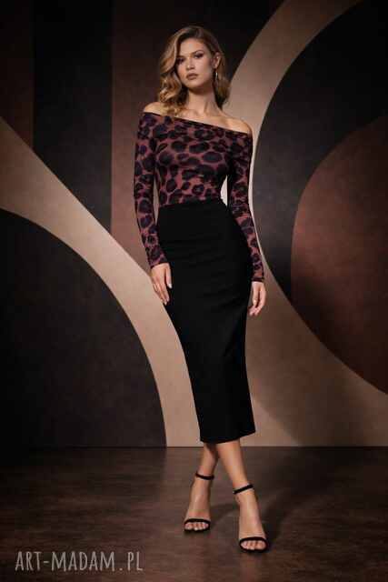 Bluzka z autorskim deseniem "Panterka", którą warto mieć w swojej szafie. Będzie ona idealna na wiele okazji zarówno na dzień jak i na imprezę! Odsłania ramiona, podkreśla talię i miękko otula sylwetkę.