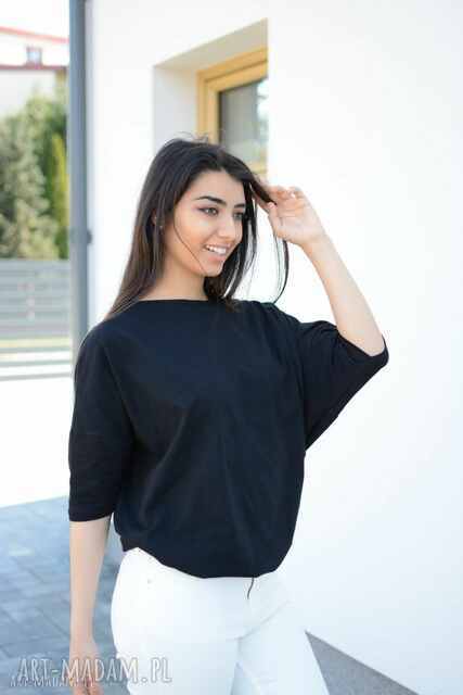 ręczne wykonanie szeroka luźna bluzka nietoperz oversize czarny