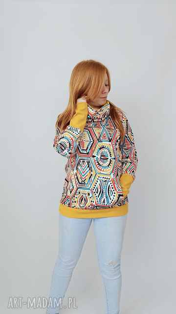 ręczne wykonanie bluza damska aztecki styl z kominem