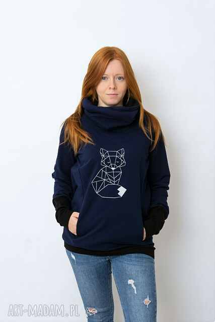 ręcznie wykonane bluza damska granatowa lis z kominem