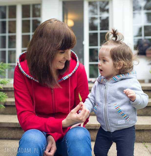 „z tłumu”. Idealna na chłodniejsze letnie wieczory czy jesienne dni. Bluza w kolorze pięknej głębokiej czerwieni lub szary melanż. Model damski jest taljowany.