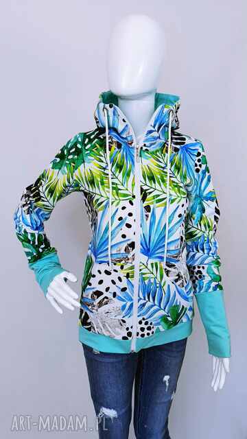 ręcznie wykonane bluza damska rozpinana z kapturem palmy