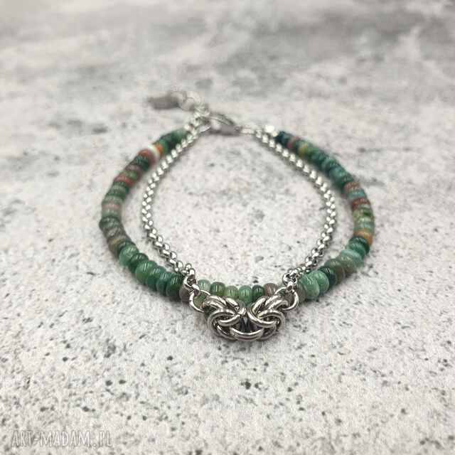 Bransoletka z heliotropem ii. Kamienie uzupełnia ręcznie formowane srebro i drobne oponki granatu, Materiał, Kamienie358,00 zł