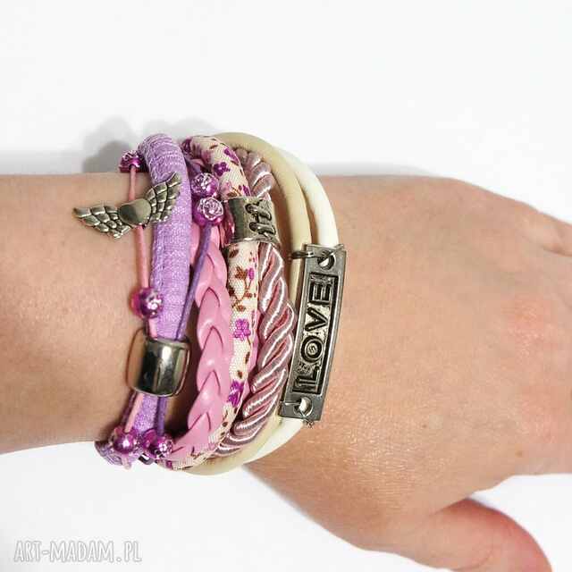 szybka wysyłkaBransoletka - różowy domek - rzemienie. Bransoletki handmade Sznurka oraz przekładek i koralików, Kremowy, najgrubszy, Długość ok, piękny95,00 zł