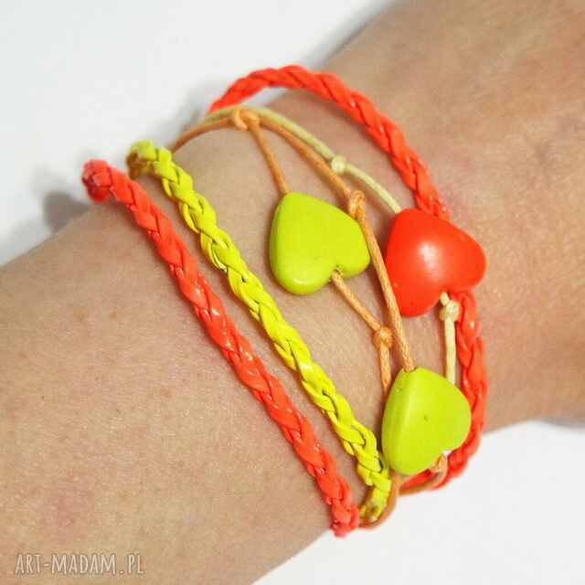 szybka wysyłkaBransoletka - neonowa pomarańcza - rzemienie. Bransoletki handmade Bransoletka zrobiona jest z rzemieni z eko - skóry i sznurka, Zapięcia metalowe75,00 zł