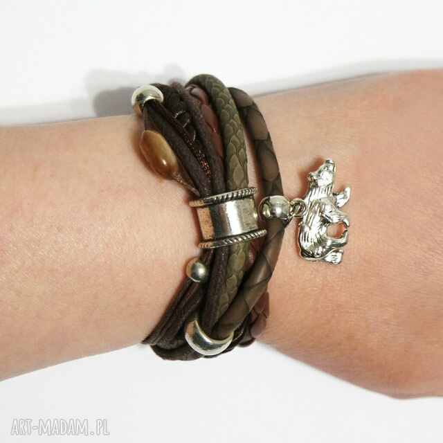 szybka wysyłkaBransoletka - konik na biegunach, lila - rzemienie. Bransoletka zrobiona jest z rzemieni ze skóry ekologicznej, materiału, Zapięcia metalowe75,00 zł
