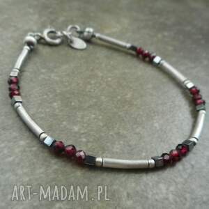 Bransoletka grossular z łańcuszkami. Bransoletki handmade Bransoletka wykonana z fasetowanych sześcianów granatu, grossularu ok, Elegancko zapakowana359,00 zł