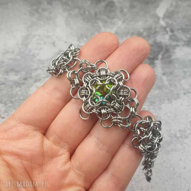 szybka wysyłkaBransoletka chainmaille- apatyt. Elegancka bransoletka z kamieniem, Bransoletkę wykonałam ze stali w technice chainmaille149,00 zł