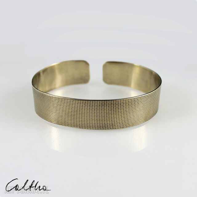 Wzór jest lekko podkreślony ciemną patyną uzyskaną w procesie oksydacji (bez użycia sztucznych barwników). Nieznaczne ciemnienie metalu na skutek użytkowania jest procesem naturalnym (należy unikać długotrwałego kontaktu bransolety z wilgocią).