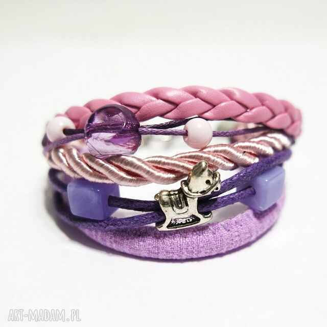 szybka wysyłkaBransoletka - lila love - rzemienie. Bransoletki rzemienie Materiału, 19 cm plus przedłużka, Wykończenie w kolorze srebrnym, piękny95,00 zł