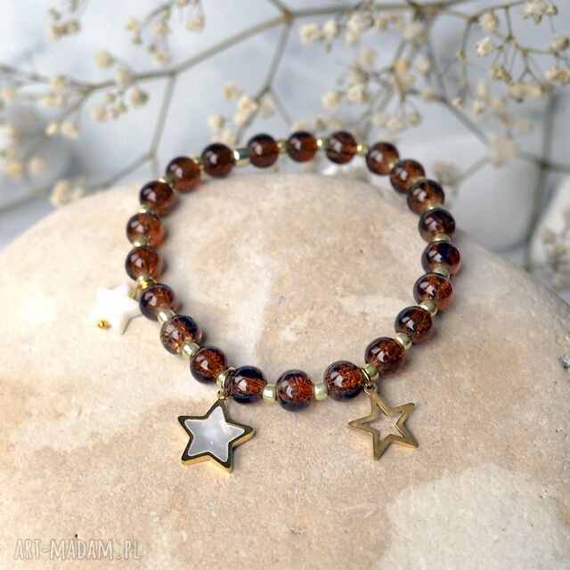 szybka wysyłkaBransoleta madera- wyrazista biżuteria z kamieniem szlachetnym. • koraliki szklane, • Doskonała na prezent dla osoby, gotowym prezentem145,00 zł