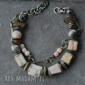Labradoryt warstwowa srebrna bransoletka. Elementy ozdobne zostały wykonane ręcznie od podstaw, Bransoletka ma unikalny, 3,5 mm420,00 zł