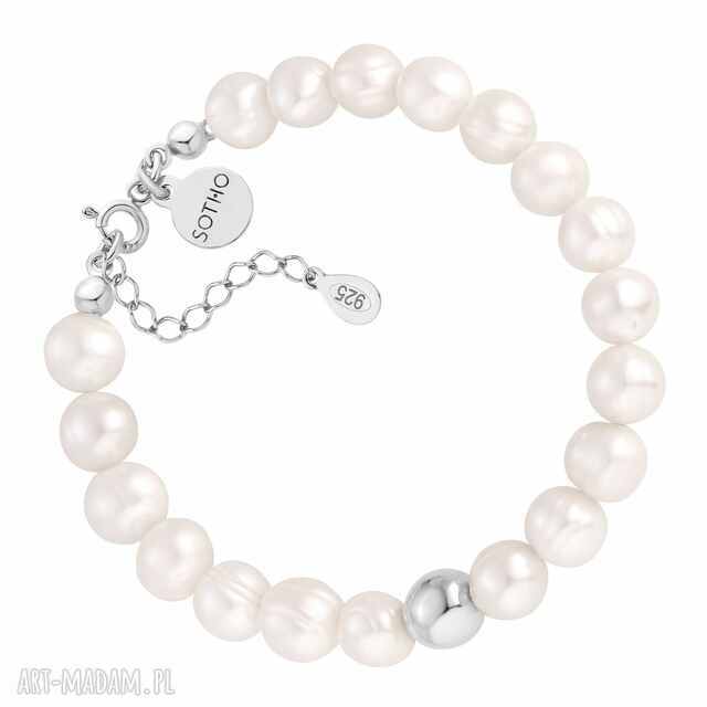ręczne wykonanie srebrna bransoletka z pereł naturalnych z kulką