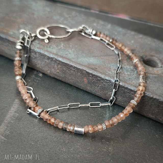 Labradoryt warstwowa srebrna bransoletka. Elementy ozdobne zostały wykonane ręcznie od podstaw, Bransoletka ma unikalny, Kamienie, 3,5 mm420,00 zł