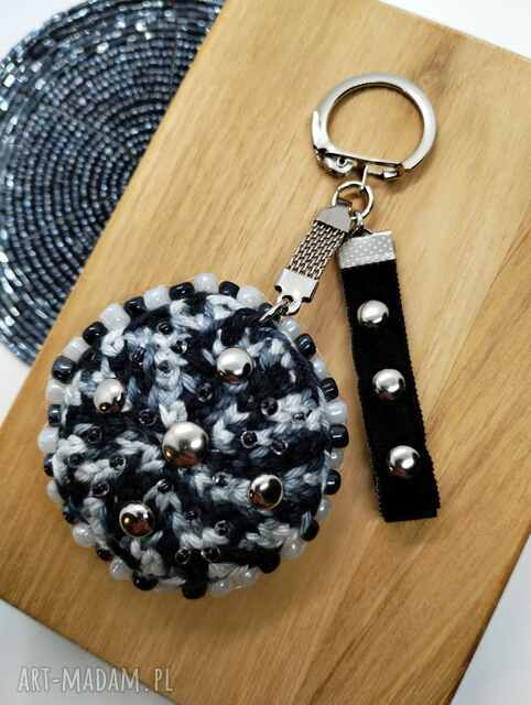 Zawieszka szydełkowa biało-czarna z ornamentem kr 21 26. Zawieszka - do plecaka breloki Zawieszka szydełkowa okrągła przeznaczona do przypięcia do torby, Wymiary, 5 cm35,00 zł