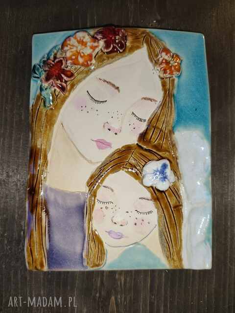 handmade anioł z dzieciątkiem ceramiczny