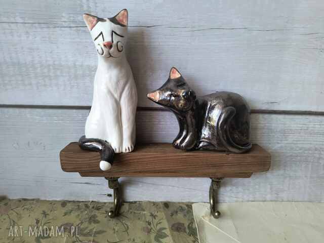 ręcznie wykonane wieszak z biało-czarnymi kotami ceramika