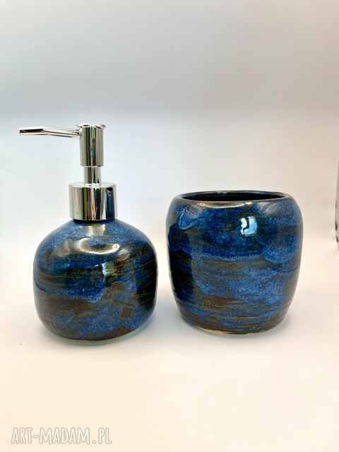 Ręcznie robiony zestaw łazienkowy - dozownik na mydło i kubek na szczoteczki | Ceramika artystyczna wypalana w wysokiej temperaturze