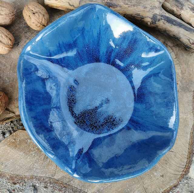 Ceramiczna misa wykonana z jasnej gliny. Formowana ręcznie. Wypalona dwukrotnie w piecu ceramicznym. W środku szkliwo w kolorze indigo. Na zewnątrz w kolorze antycznego różu. Będzie piękną dekoracją stołu. Misa idealna na owoce, orzechy lub inne przekąski. Ta ceramika lubi mycie ręczne.