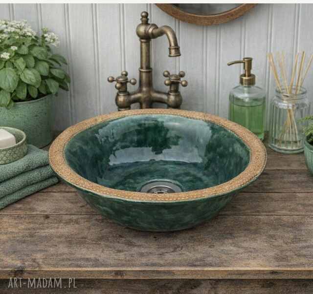 handmade ręcznie wykonana zielona umywalka ceramiczna w stylu farmhouse