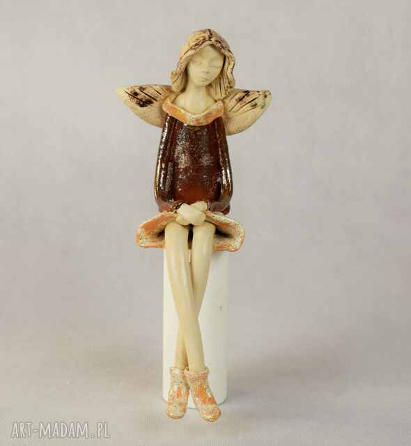 Anioł ceramiczny siedzący. Ceramika handmade Ceramiczny anioł siedzący, Zamyślony anioł wykonany ręcznie z gliny, 24 cm145,00 zł