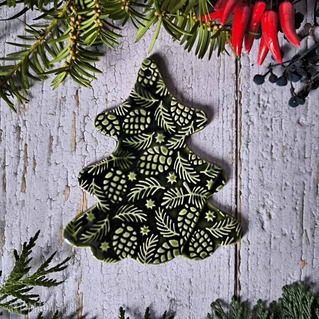 handmade zawieszka choinka XL butelkowa zieleń upominki świąteczne