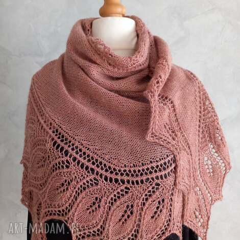 szybka wysyłkaChusta asymetryczna z ręcznie farbowanej 100% jagnięcej wełny merynosowej brąz. Baby merino rękodzieło różowe. Piękna i delikatna chusta asymetryczna z ręcznie farbowanej 100% jagnięcej wełny merynosowej wykonana na drutach, 30 st369,00 zł