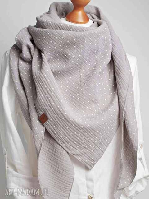 Chusta muślinowa damska bawełniana, trójkątna chusta na jesień. Miękka i bardzo przyjemna w dotyku chusta damska w kolorze grantowym, grantowy w kropki, 2 - 3 dni79,90 zł