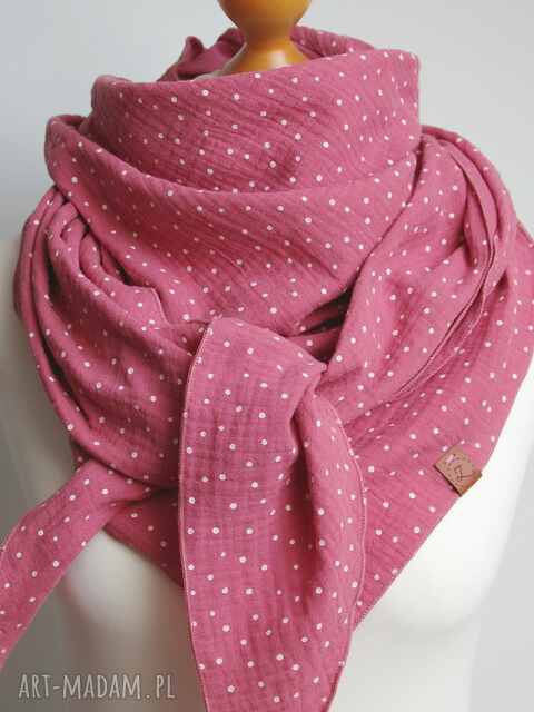 Miękka i bardzo przyjemna w dotyku chusta damska w kolorze zgaszonego różu. Chusta została uszyta z delikatnej tkaniny bawełnianej - muślinu, który jest bardzo przyjemny dla skóry.