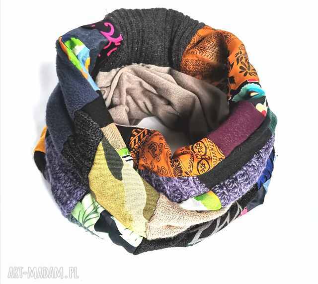 Komin patchworkowy kolorowy folkowy według zasady zero waste, polecam box 44