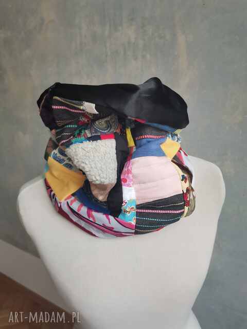 handmade komin oversize patchworkowy etno boho na podszewce, kolorowy c1 chustki