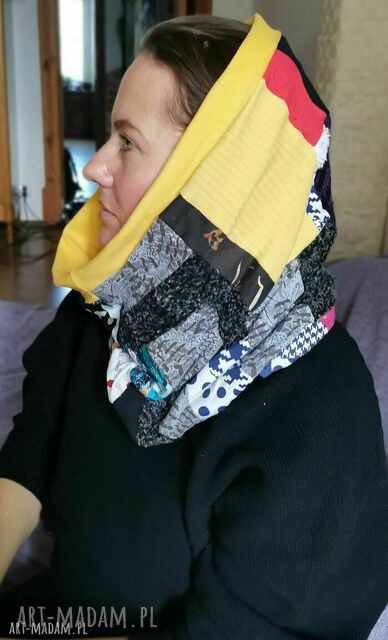 komin patchworkowy boho handmade kolorowy ciepły - box 44 szyty z kawałków, miły, miękki