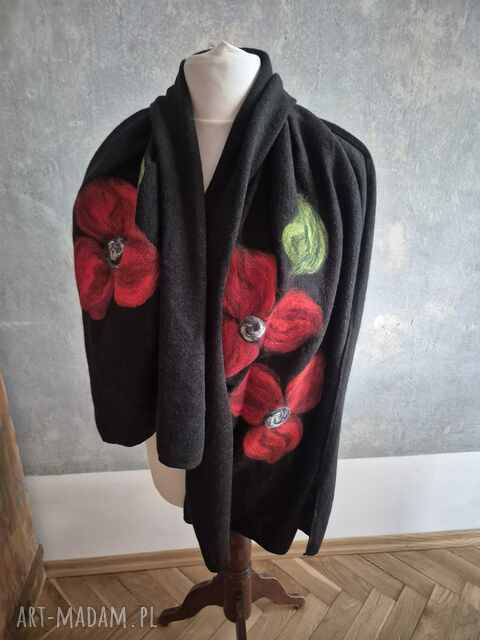 Super prezent na dzień mamy czarny ostatnie bez powtórek filcowany wełniany miły i ciepły szal handm