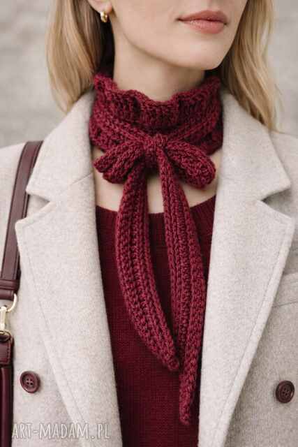 Naszyjnik dzianinowy - amarant. Oryginalny naszyjnik - szal, Uniwersalny dodatek, Zaprojektowany tak, Niebanalny78,00 zł