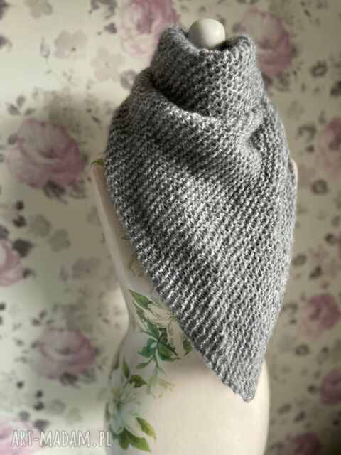szybka wysyłkaChusta szara. Przepiękny szal o asymetrycznym kształcie trojkąta, wykonany na drutach z wełny150,00 zł