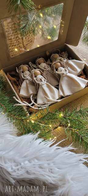 Makramowe aniołki świąteczne - lmiane, 5 sztuk.