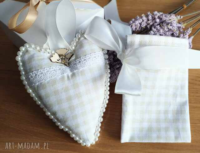 ręcznie wykonane serce z woreczkiem na kartę podarunkową dekoracje