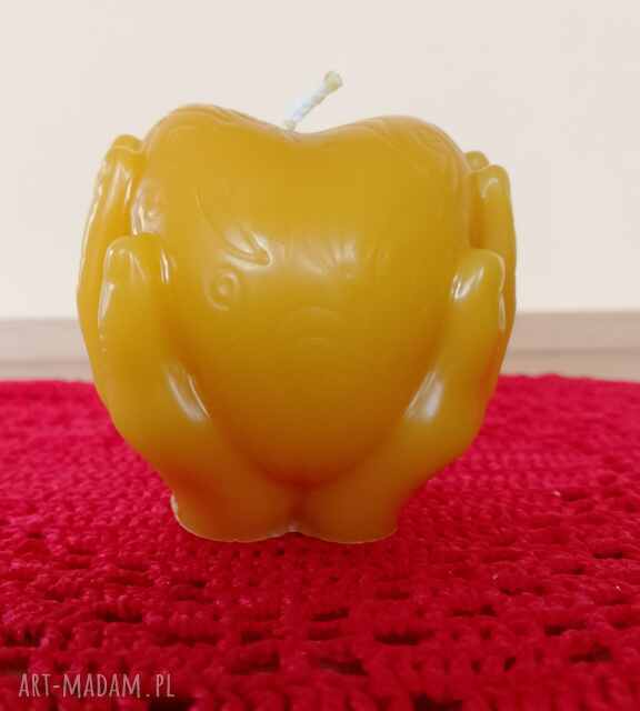 Świeca wykonana ręcznie z prawdziwego (niefałszowanego) wosku pszczelego. Wosk pochodzi z naszej przydomowej pasieki.