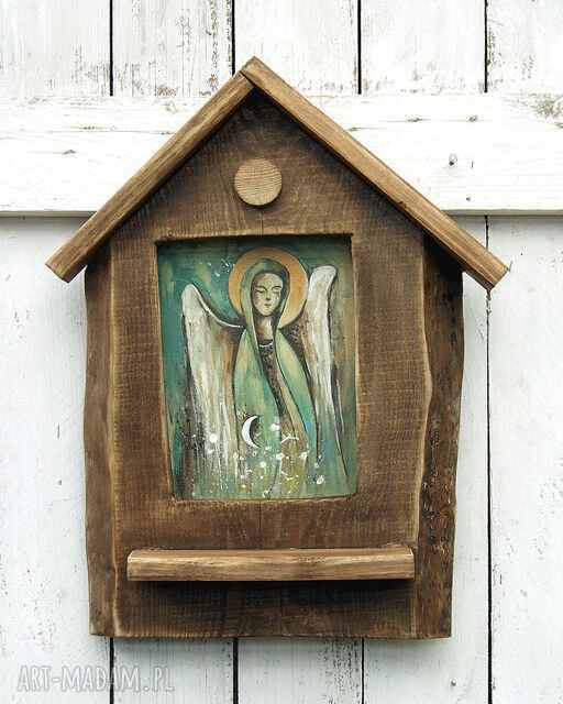 Kapliczka domowa - klimatyczną i pełna uroku dekoracja wnętrza. Może być także zawieszona w ogrodzie - w miejscu osłoniętym od deszczu, albo na werandzie. Taka kapliczka to także miły, oryginalny prezent do nowego domu.