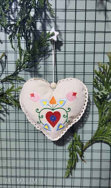 ręczne wykonanie duże serce zawieszka z haftem pomysł na upominki