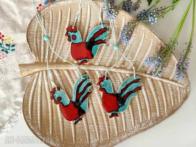 Duży kogucik ceramiczny folk - ozdoba wisząca. Dekoracje handmade Ceramiczny kogucik na sznurku, ręcznie wykonany i szkliwiony w wyrazistych, Materiał, Ceramika45,00 zł