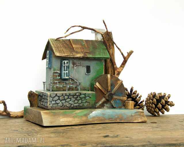 ręcznie wykonane leśny młyn - duży, drewniany domek dekoracyjny