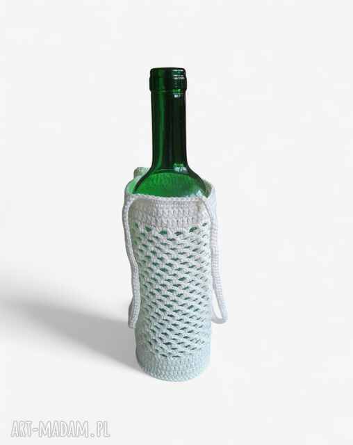 Delikatna, a jednocześnie solidna osłonka na butelkę wykonana ręcznie na szydełku z naturalnej, 100% bawełny. Idealna na wino, nalewki lub domowe przetwory — sprawdzi się jako wyjątkowy dodatek na stół, prezent świąteczny, ślubny, urodzinowy lub host gift na odwiedziny.