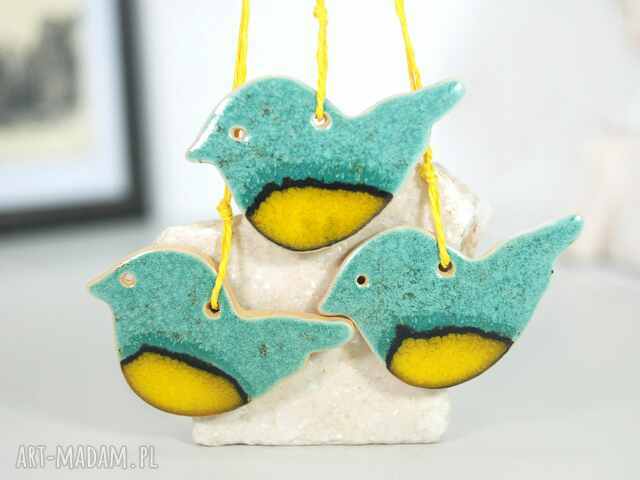 ręcznie robione ptaszki ceramiczne sikorki - wiszące dekoracje do domu