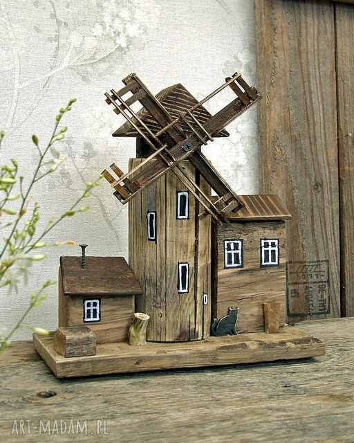 Młyn wiatrowy - dekoracja, ozdoba, ręcznie wykonana, w prostym sielskim klimacie. Domki z naszej pracowni, tworzą naturalny i przytulny klimat domu, i podkreślają bliskość z naturą.