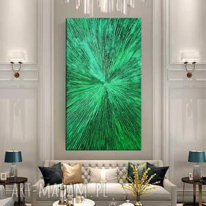 handmade szmaragdowo seledynowy duży obraz strukturalny 80x160cm dekoracje