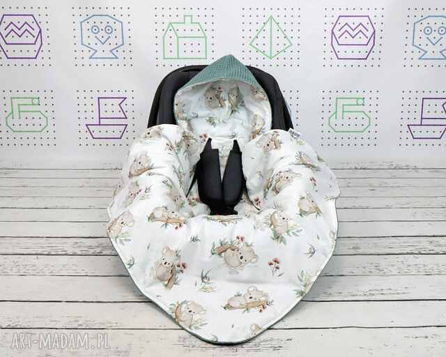 ręcznie wykonane bawełniany kocyk do fotelika infant - koala biel dla dziecka