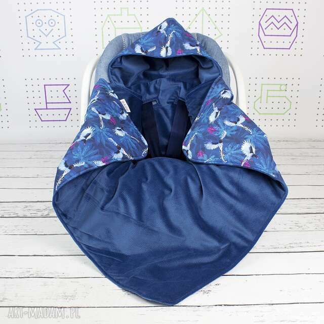 Duży kocyk do fotelika samochodowego velvet nocne ptaki